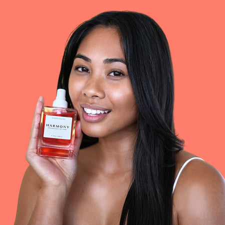 NOTE: As this product contains papaya, pineapple and red yeast rice, sediment (starch from the rice and papaya/pineapple) may occur in the bottle and the ingredients can culture (like kombucha) to create beneficial bacteria for skin. This can at times create a sediment, cloudy appearance, or evolve in scent. Shake vigorously to mix ingredients before spritzing or you may wish to pour and apply Harmony via an eco-friendly cotton pad.
